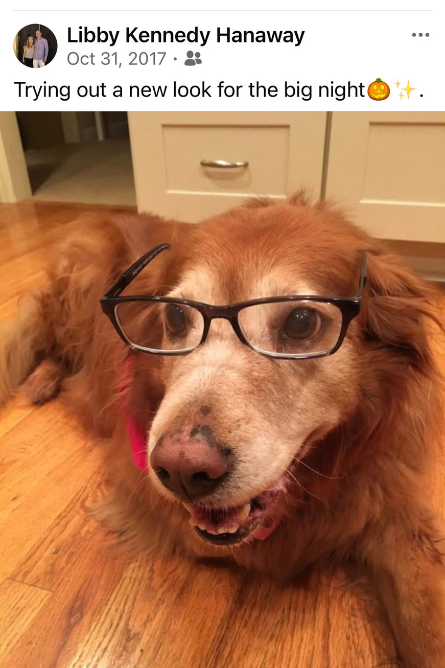 *FRIDAY: Facebook Memories screenshot of Goldie — Halloween 2017. I already have the original pic in multiple folders and locations, but felt the need to save it once more: